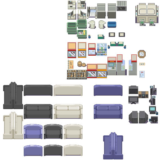 전부 다 매력적인 맵칩들인데, 문제는 이게 vx랑 규격이 맞지 않아서 맵칩에 등록하면 살짝 어긋나거나 옆에있는 물체랑 자꾸 겹치더군요. 제가 직접 포토샵을 이용해서 짜집기 하기에는 실력이 많이 부족해서 제대로 결과가 잘안나옵니다ㅠ