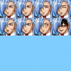 이놈 얼굴의 머리카락 색 좀 주황색으로 바꿔주시고 , [저 캐릭터처럼] 눈을 빨강색으로 해주세요 .. 얼굴 다 안해주셔도 되니까 일단 첫번째 표정만이라도 ..