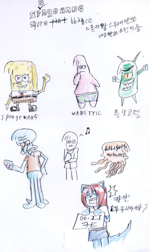 저, 王코털하고 스펀지밥과 그 친구들의 일부를 합쳐보았어요.....